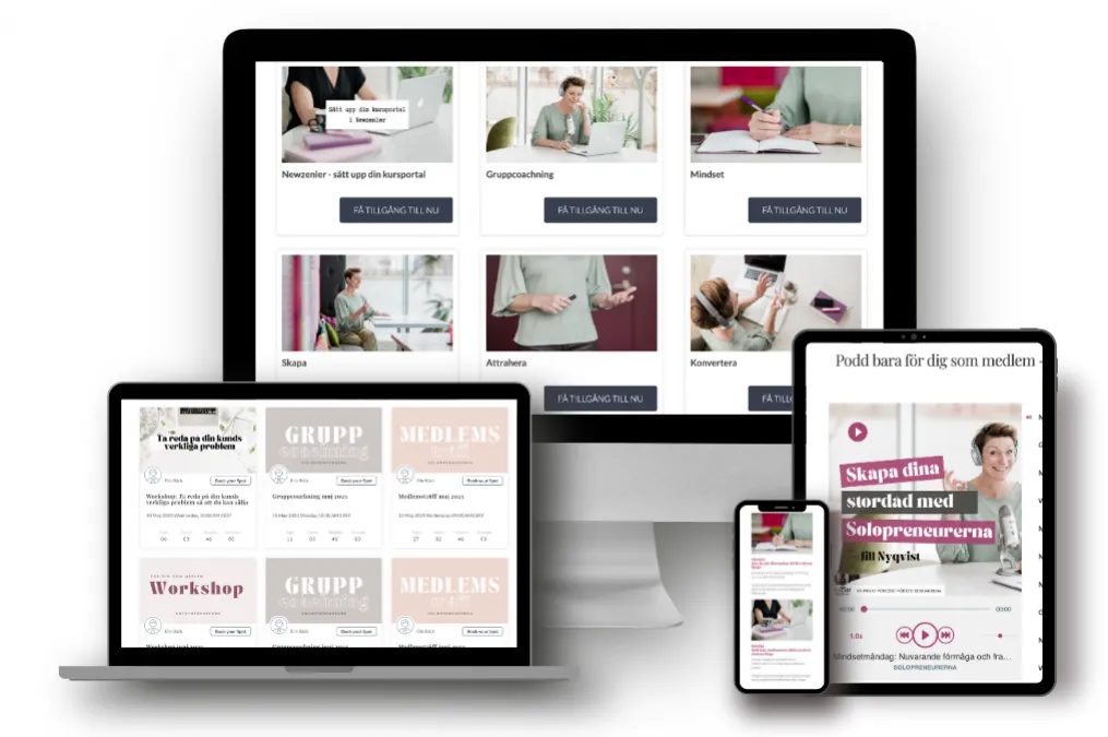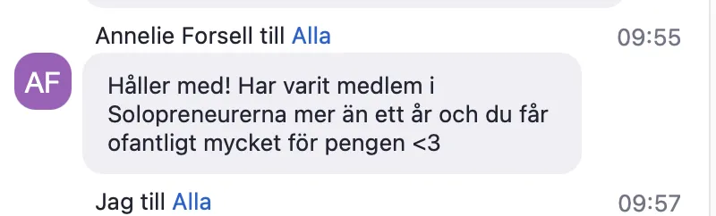 Tillgång till workshops, gruppcoachning, medlemsträffar och community i Solopreneurerna.